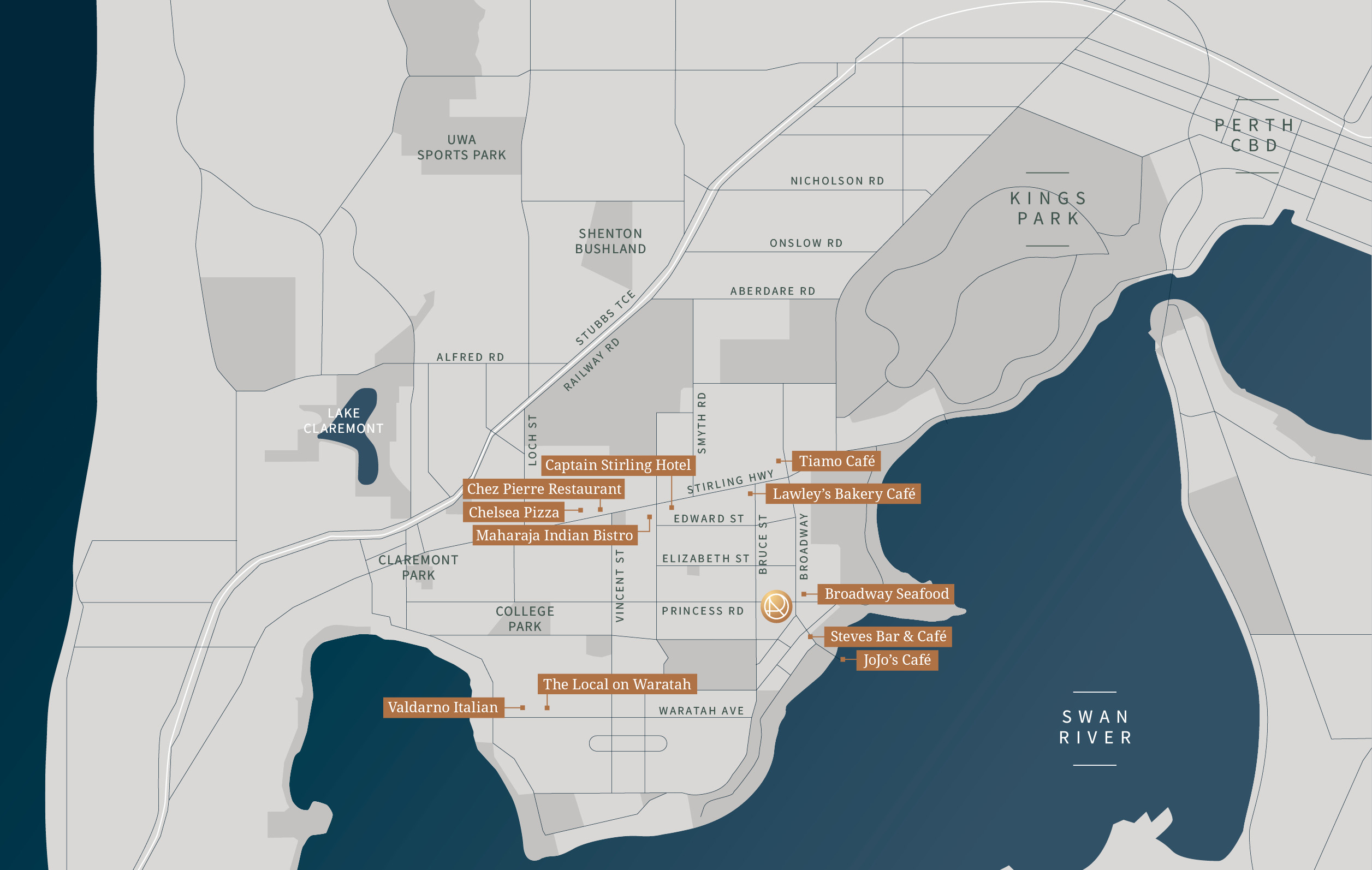 Along Broadway, you’ll find a large range of cafés, restaurants and bars, including Little Way, Steves, JoJo’s Café, Varsity and more. When it comes to outdoor pursuits, you’re truly spoilt for choice, with UWA Aquatic Centre, Matilda Bay Reserve, Mounts Bay Sailing Club, Nedlands Golf Club, Nedlands Tennis Club and so many other options within a short stroll of home.